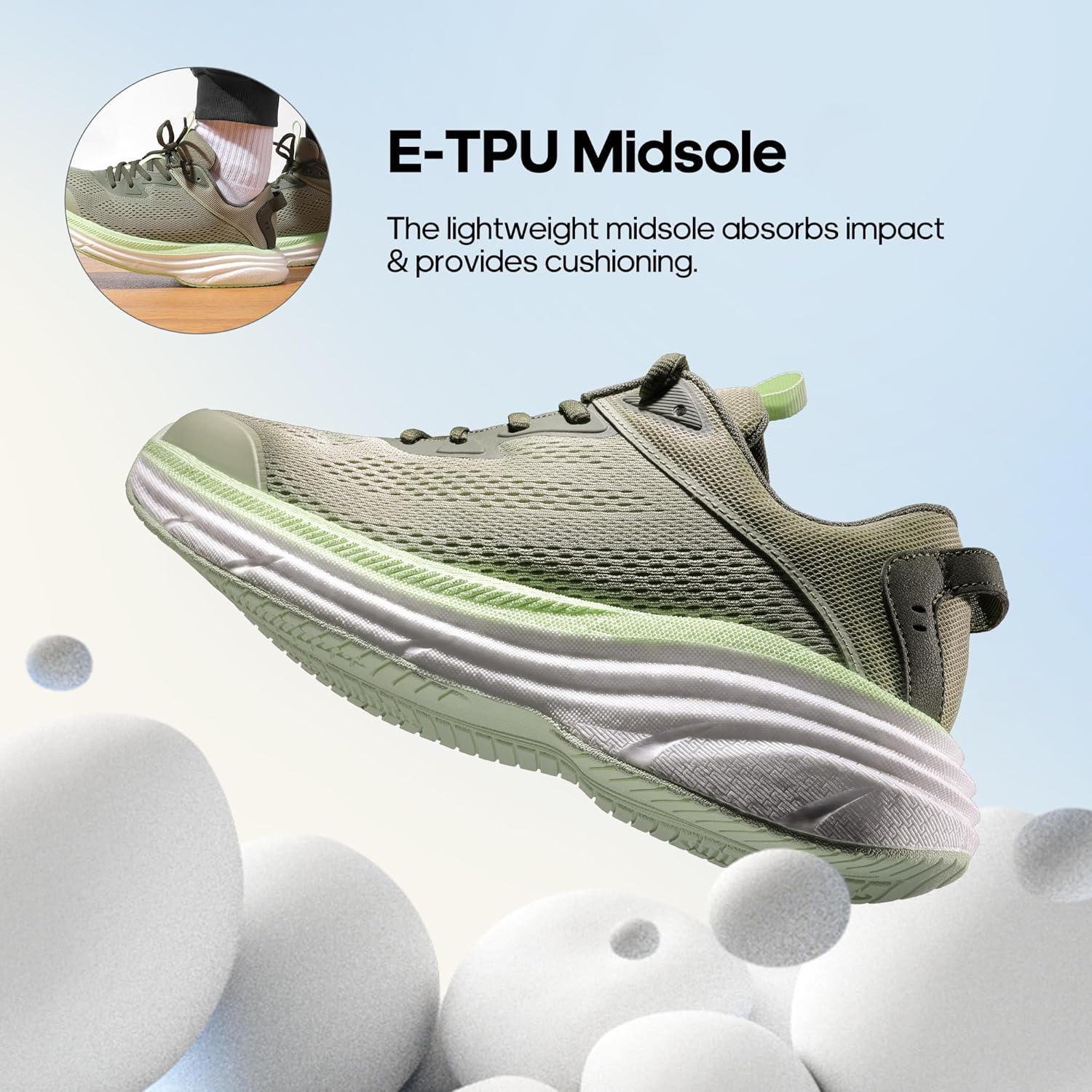 - Shock Absorption & Lightweight: The midsole ensures these lightweight sneakers, have high-rebound cushioning, offering softness and comfort.