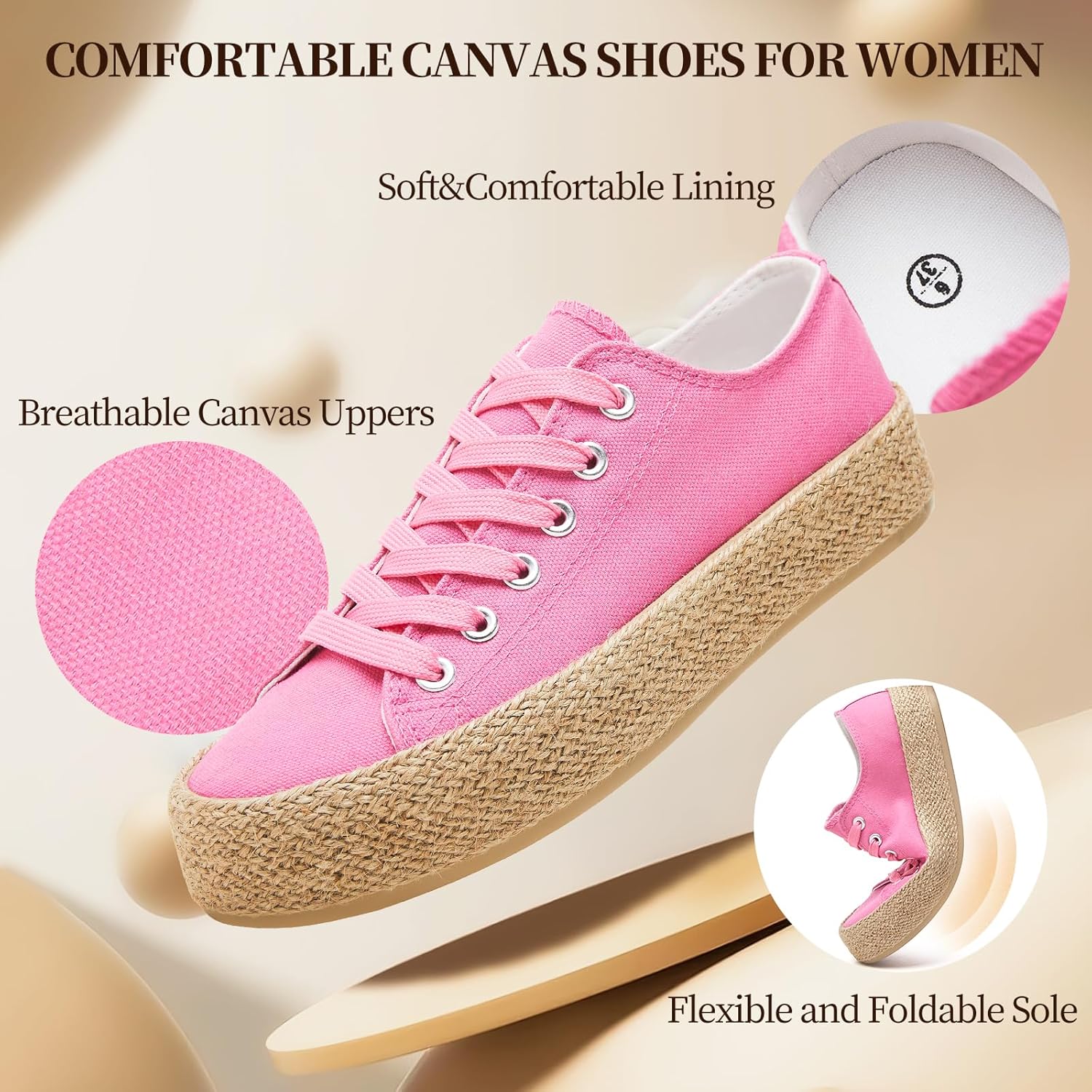 - Unique Platform Design: The height of the sole of these black platform sneakers for women is about 1.18 inches, which elongates your legs and makes you appear taller visually when you wear them. The hemp rope design around the soles of platform shoes to makes these canvas sneakers look more distinctive.