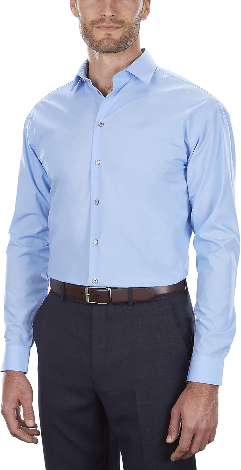 • Worry-free spread collar includes sewn-in collar stays for a crisp look even without a tie