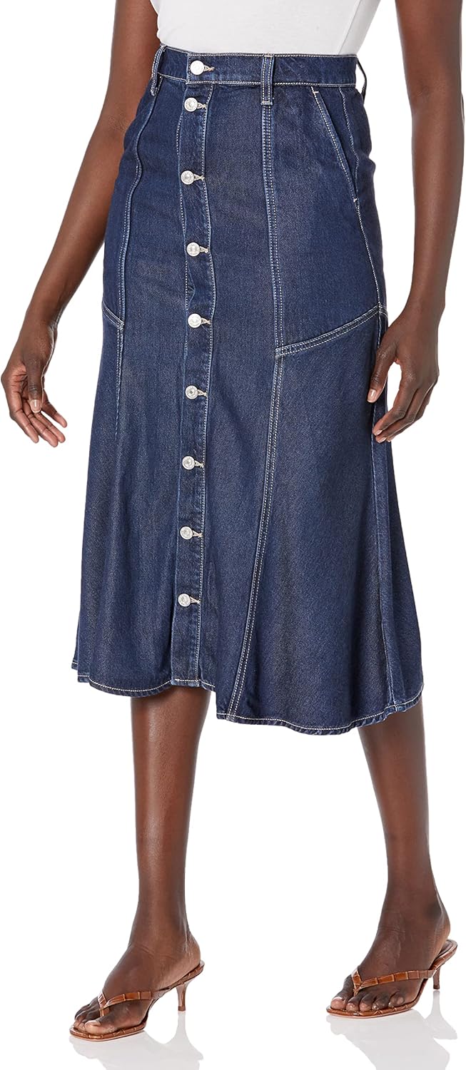 - The women’s long denim skirt is available in a range of sizes to ensure a perfect fit for every woman.