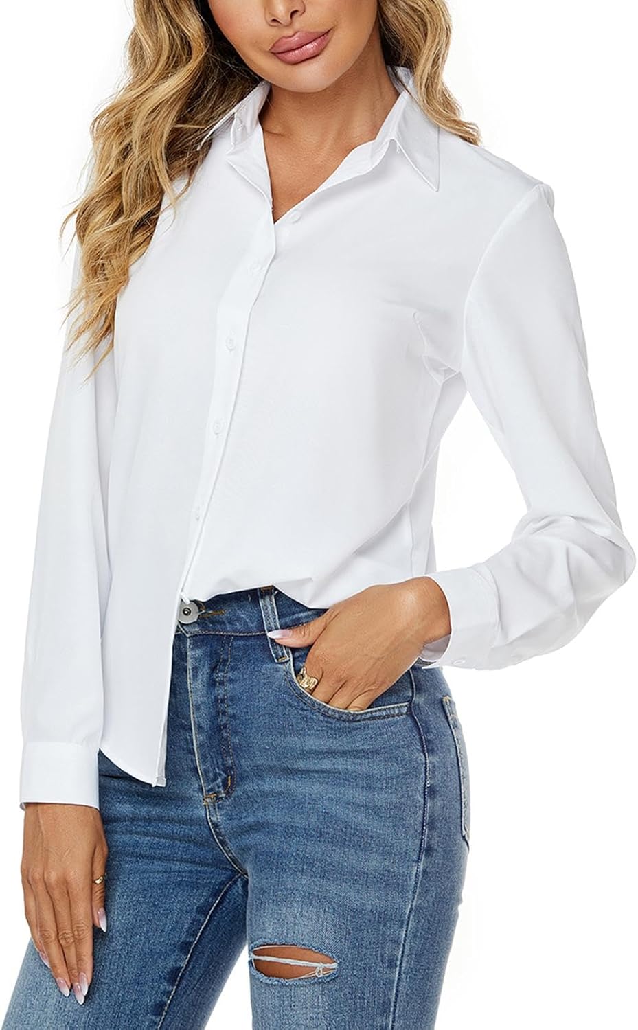 - ☛PROFESSIONAL & STYLISH☚ – An essential for every wardrobe: Classy spread collar button down shirt, long sleeve with a single button cuff, curved hem. You can unbutton a button or two to create a v-neckline, which can improve the feminine charms and show your superb necklace