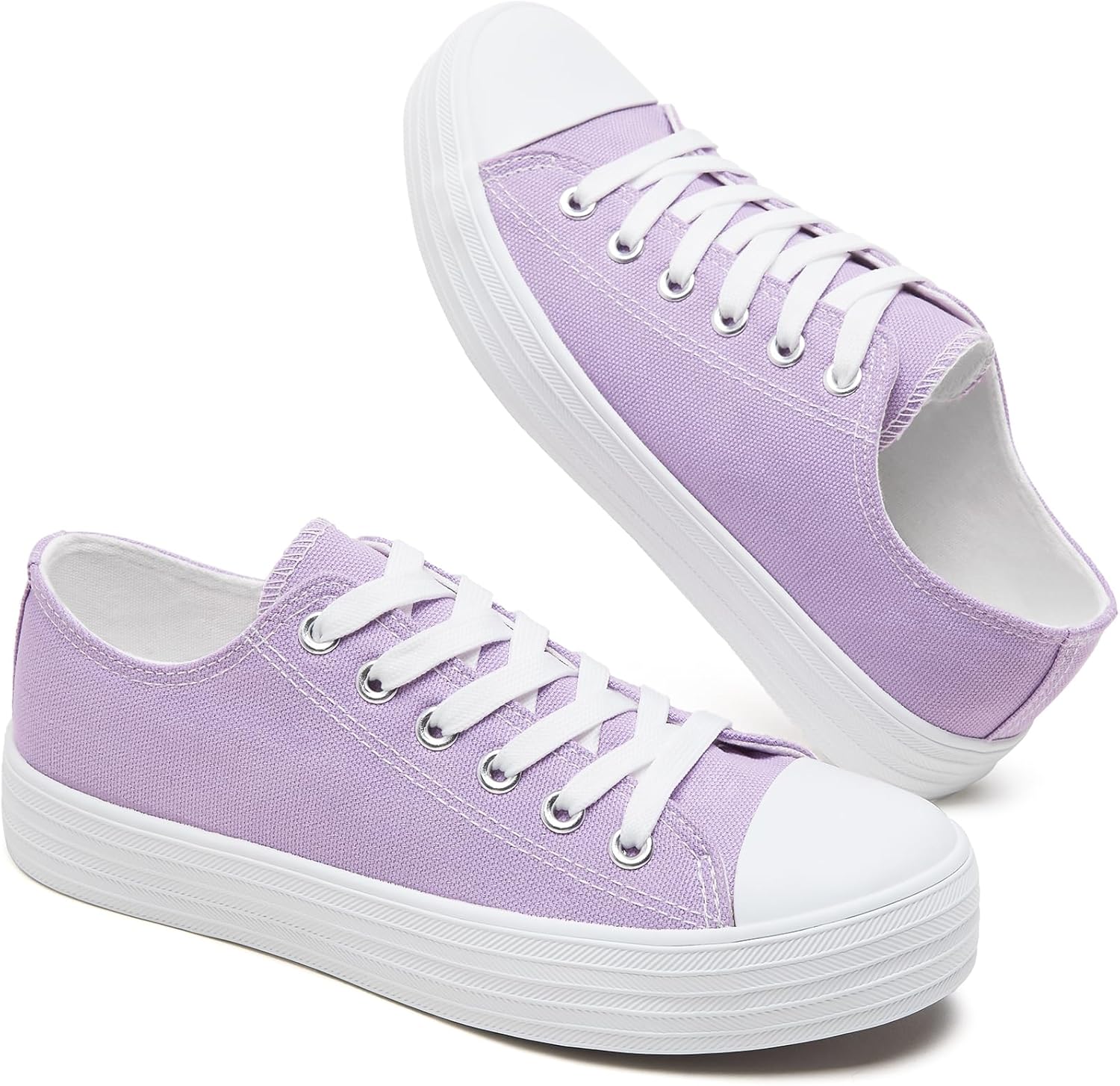 - 【Lightweight and Breathable】The soft padded insole of low top walking shoes can increase your comfort during exercise and walking. White canvas sneakers for women can keep your feet breathing even in hot summers.
