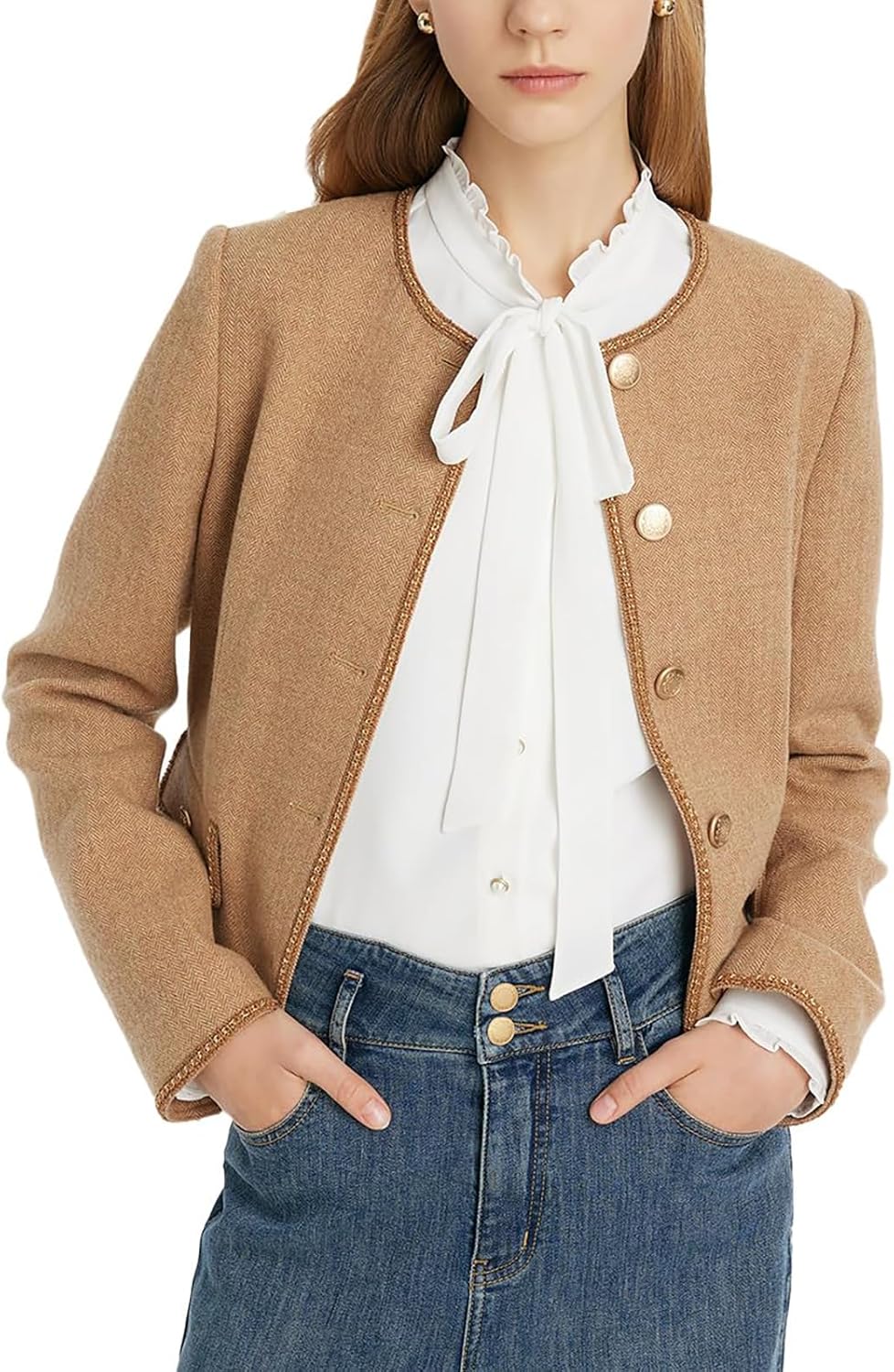 - FUNCTIONAL – This black cropped tweed blazers jacket is a timeless classic crafted from a blend of wool, providing warmth and comfort with a refined texture. Versatile and stylish, it effortlessly complements both casual and formal looks, pairing seamlessly with jeans, tailored trousers, skirts, dresses, allowing you to create a variety of stylish outfits.